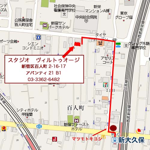 JR山手線新大久保駅改札を出て、目の前の信号を渡る。
